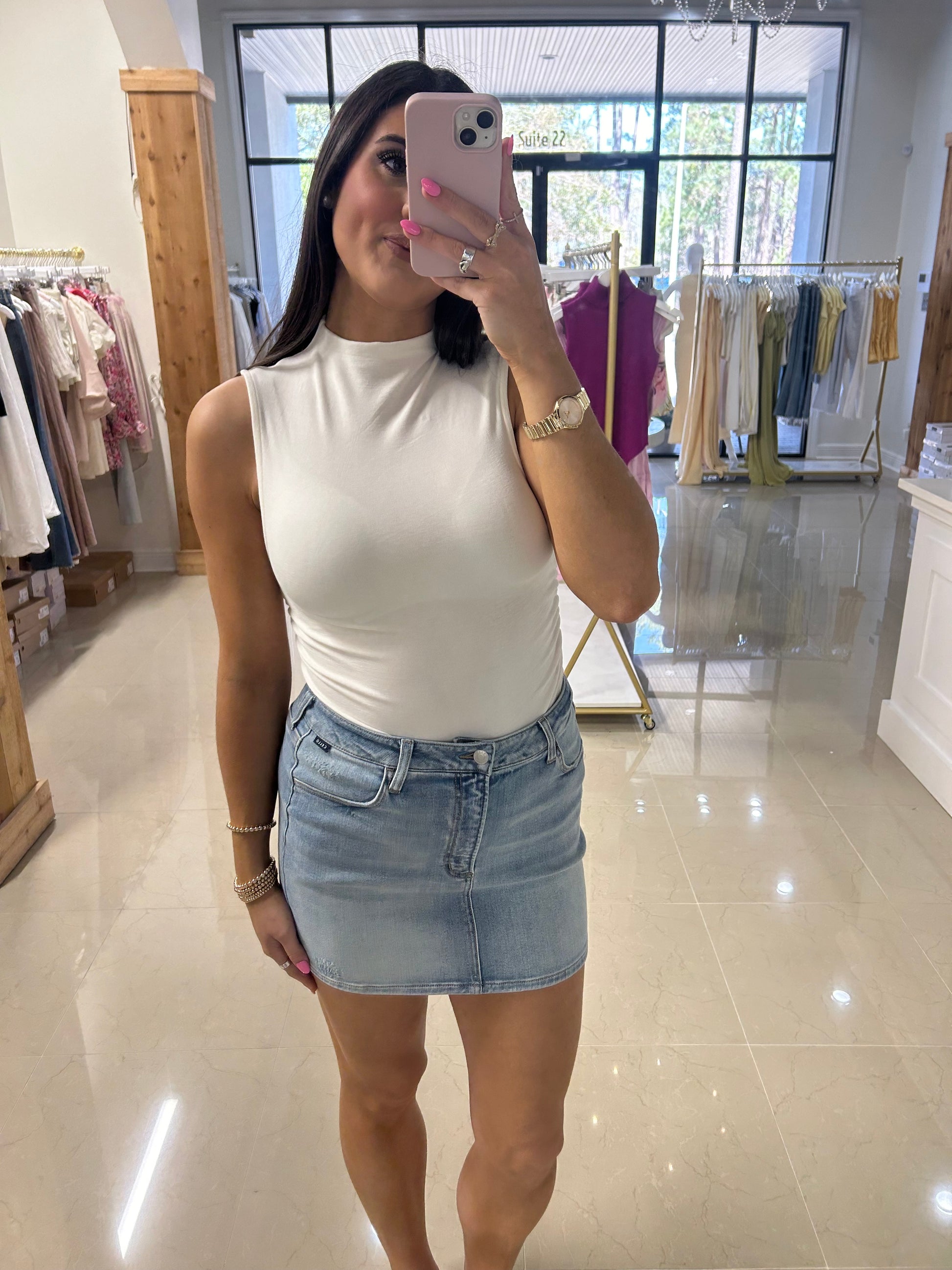 The HAYDEN top features a sophisticated high neckline paired with strategic side ruching for a flattering, sculpted silhouette. This design detail creates visual interest while offering a slimming effect that works beautifully across various body types. The elevated neckline provides coverage and a polished aesthetic, making it versatile enough for both professional settings and elevated casual wear. The ruching technique adds dimension and movement to the fabric, ensuring comfort without sacrificing style. A refined essential that transitions seamlessly from day to evening.