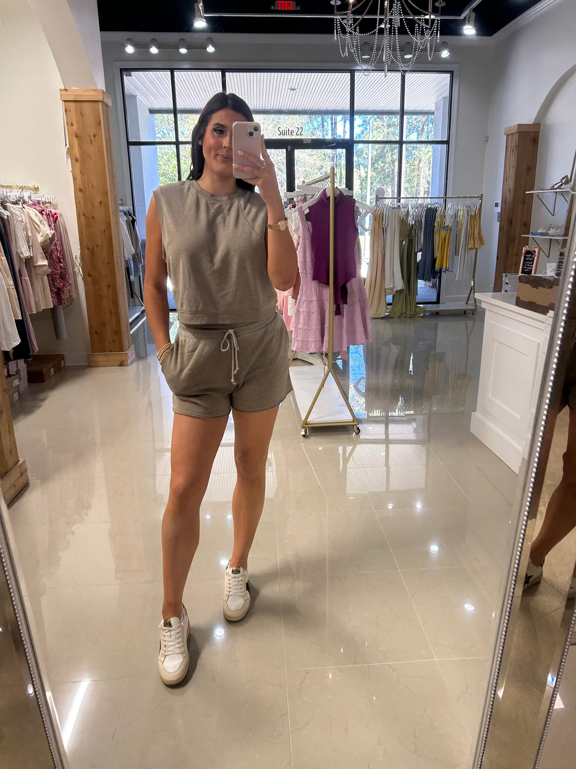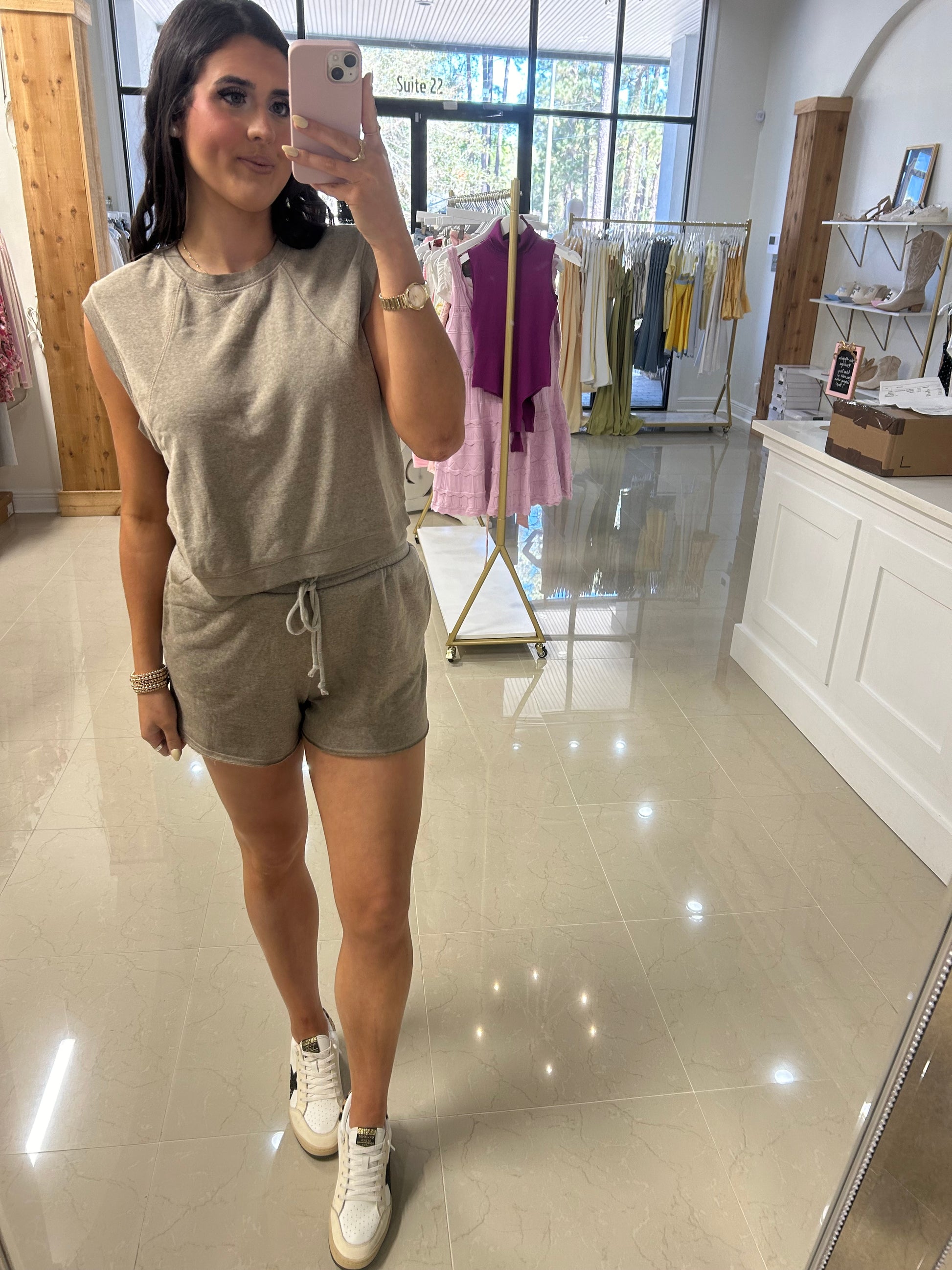 The KAYLIN set brings effortless style to your everyday wardrobe. This coordinated two-piece features a relaxed mocha top paired with matching shorts, creating a cohesive look that transitions seamlessly from casual outings to laid-back weekends. The neutral mocha tone flatters all skin tones and pairs easily with your existing pieces. Perfect for those who appreciate comfort without compromising on style.